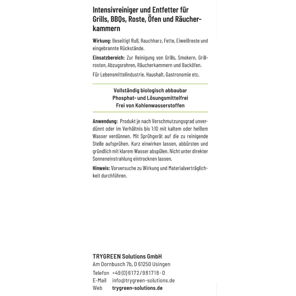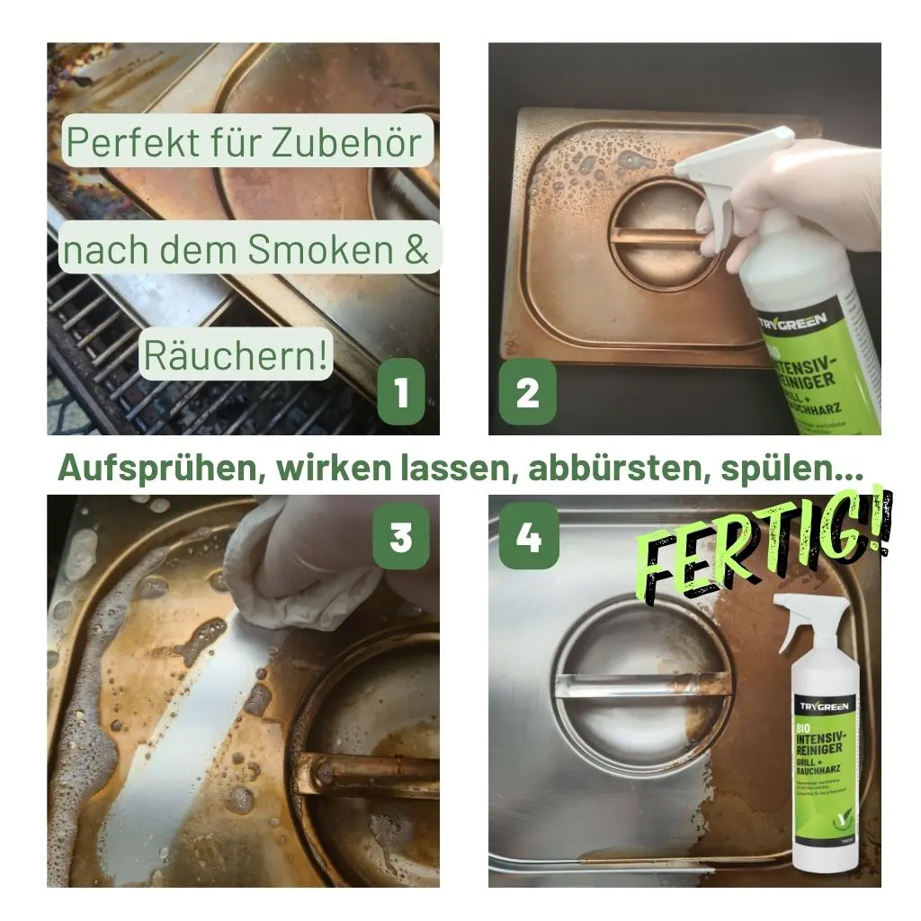 - Effektive Reinigung: Dieser Reiniger entfernt selbst die hartnäckigsten Grillrückstände, Rauchharz, Ruß und Fett – ideal für eine gründliche Grillreinigung.