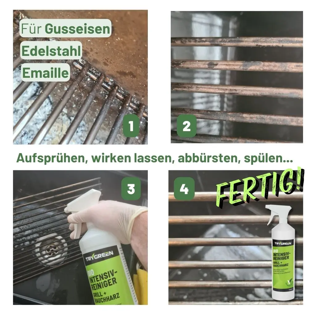 - Schnell und effizient: Dank seiner hohen Wirksamkeit können Sie in kürzester Zeit Ihren Grill und Grillrost aus Edelstahl oder Gusseisen reinigen.