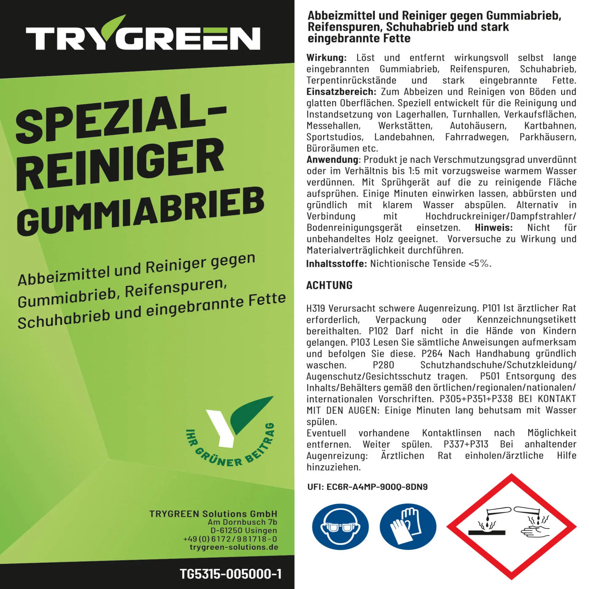 Der SPEZIALREINIGER GUMMIABRIEB wurde speziell entwickelt, um Abrieb und Spuren von Gummi auf unterschiedlichen Untergründen zuverlässig zu entfernen. Derartige Ablagerungen hinterlassen unschöne Spuren und erhöhen auf Flächen mit Fahrzeugverkehr, wie zum Beispiel Fahrradwegen, Landebahnen oder Beladestationen, nicht unerheblich die Rutschgefahr – besonders in Verbindung mit Feuchtigkeit. Mit herkömmlichen Reinigungsmitteln lassen sich Reifen- und Schuhspuren nicht entfernen. Unser SPEZIALREINIGER GUMMIABRIEB löst die Oberfläche des Gummiabriebs an, damit diese anschließend mit einer Bürste oder einer Reinigungsmaschine abgetragen werden können. Gleichzeitig ist das Reinigungsmittel schonend für etwaige Bodenbeschichtungen – ein besonderer Vorteil für empfindliche Böden in Showrooms, Messehallen und Turnhallen. Je nach Grad der Gummirückstände lässt sich das Konzentrat optimal verdünnen und ist somit besonders sparsam im Verbrauch.