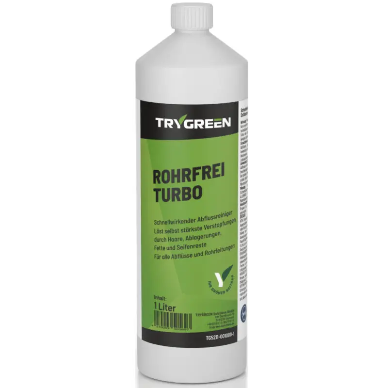 ROHRFREI TURBO ist ein Abflussreiniger in Industriestärke. Selbst bei stehendem Wasser dringt er schnell bis zur Verstopfung vor und löst sie in Minuten. Entwickelt für besonders hartnäckige Fälle, ist er der stärkste flüssige Abflussreiniger auf dem Markt – und gleichzeitig besonders materialverträglich. Dies macht ihn zum besten Rohrreiniger für moderne Installationen und Altbauten.