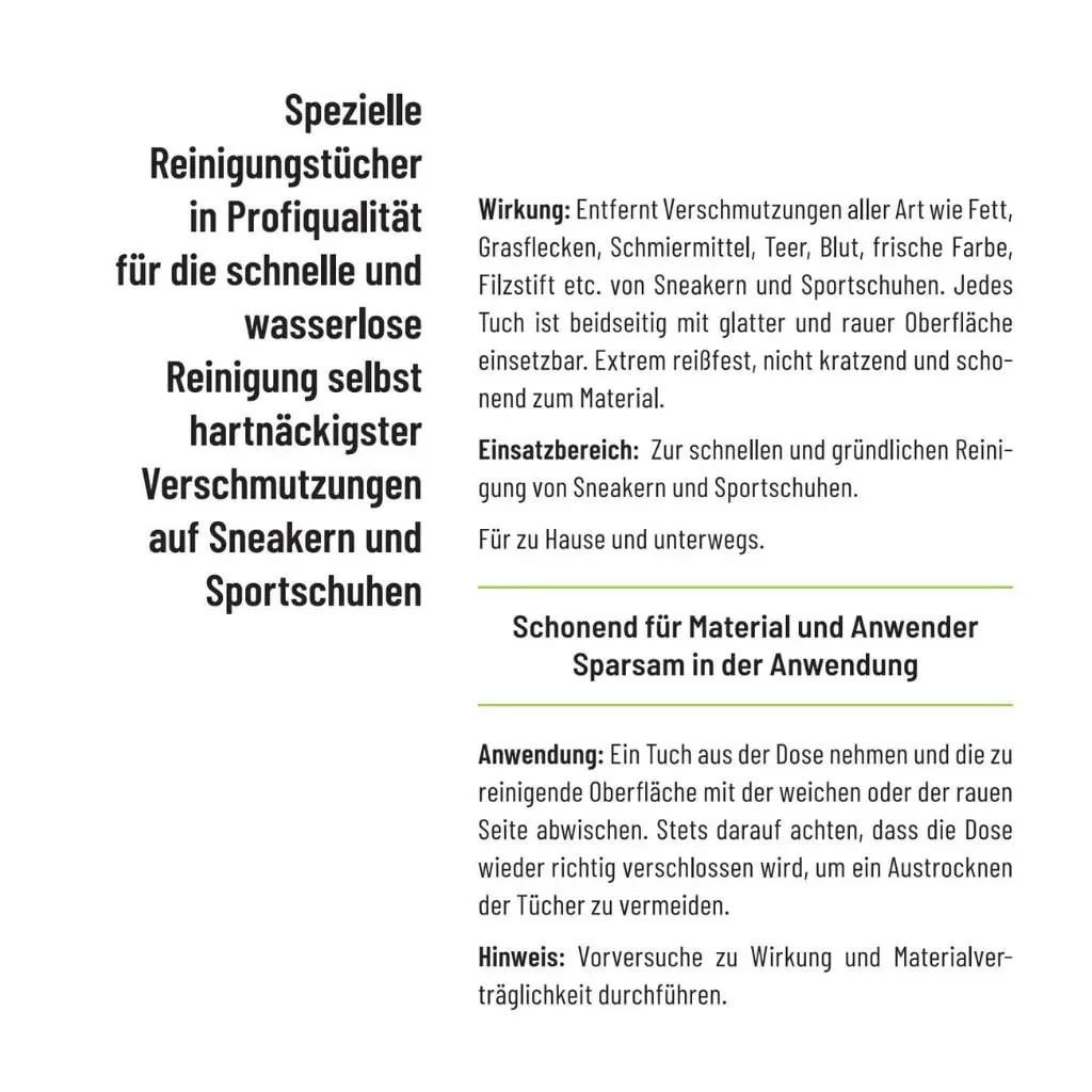 Bestellen Sie jetzt SPEZIAL REINIGUNGSTÜCHER SNEAKER + SPORTSCHUHE und bringen Sie Ihre Sneaker und Turnschuhe zum Strahlen!